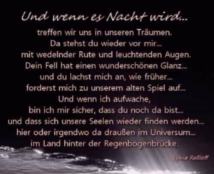 Mit schweren Herzen musste ich dich gehen lassen. Du hinterlässt eine große Lücke und viele Tränen. Bis zum Schluss warst du sanftmütig, geduldig und hast ein ruhiges Gemüt.